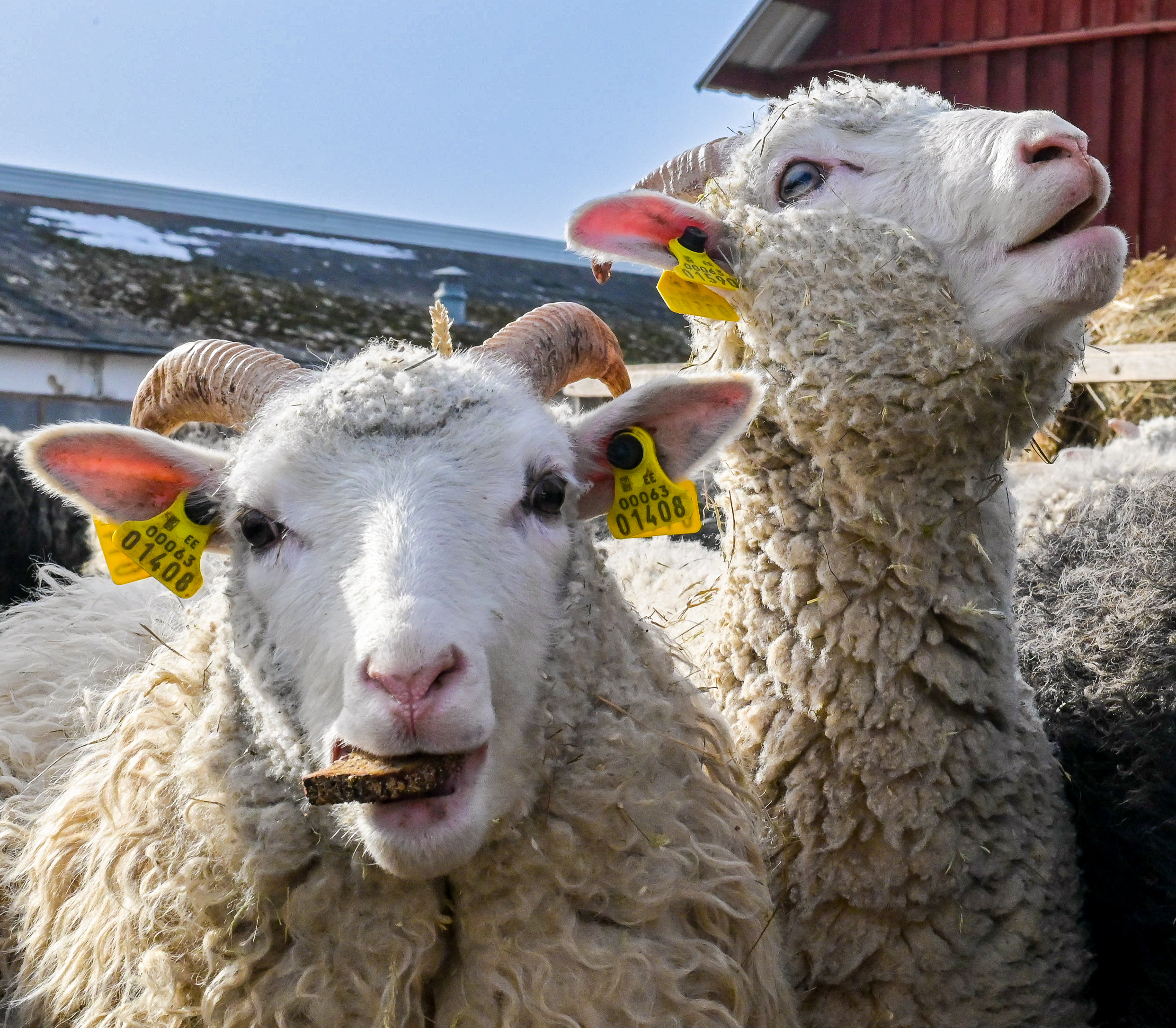 Some Estonian colleagues in the field: Kihnu native sheep enjoying rye husks at Hallivilla farm.