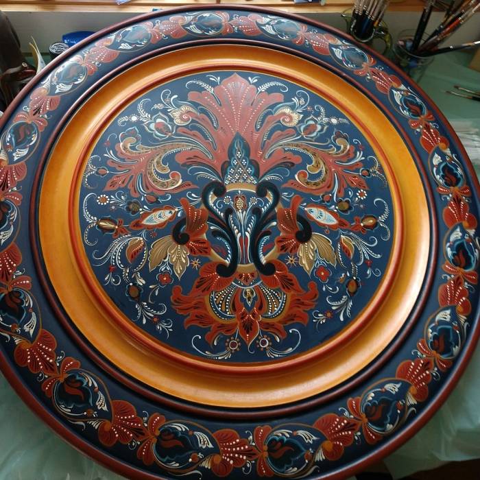 Rosemaling means “rose painting” in Norwegian and is done in many styles reflective of specific regions in Norway. The Setesdal region in southern Norway is known for its simple and bright colors and symmetrical designs, making it different from many of the other styles of rosemaling. In this course, you’ll study and practice basic techniquaes of this traditional decorative painting style. You’ll then take your new skills and decorate a wooden mangleboard or mangletre.