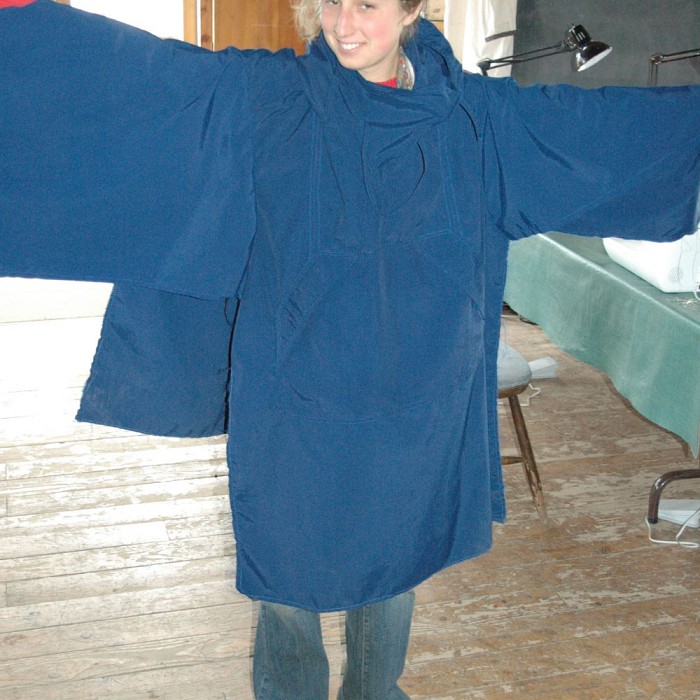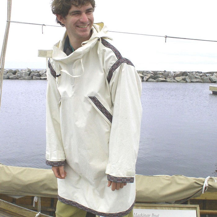 The anorak is the traditional outer garment worn throughout the far North and Arctic climates. It is designed to be worn over heavier insulating layers to block the wind and shed snow. This anorak design may be made from a variety of fabrics and features large sleeves with adjustable wrist gussets, a deep hood, and a large hand-warmer patch pocket on the front. Trim may be added if desired. The instructor will contact registered students regarding fabric options and other necessary supplies. Prior sewing experience is necessary to complete the anorak in the time allowed.