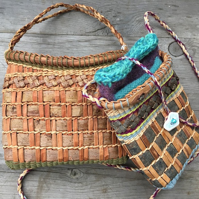 The between-twill twine pouch blends weaving techniques and materials to create a patchwork of nature that you can carry. There will be two project size options; a small pouch (approx. 6” x 1” x 4”) or a medium pouch (approx. 7” x 2” x 6”). The first day will mostly be spent working with the raw materials, to learn about their origin and how to process them. Using inner basswood bark fiber, students will prepare the cordage used to twine up the basket and for the pouch strap. Cedar bark will be used for spokes and willow bark twill woven in-between. Using the twine and twill weaving techniques will allow the students to integrate patterns in their final product. On the last day, students will use a sewing machine to make a felted liner fitted for the inside of their pouch. For weavers looking to expand their basketry with mixed natural mediums, this class is the next level!