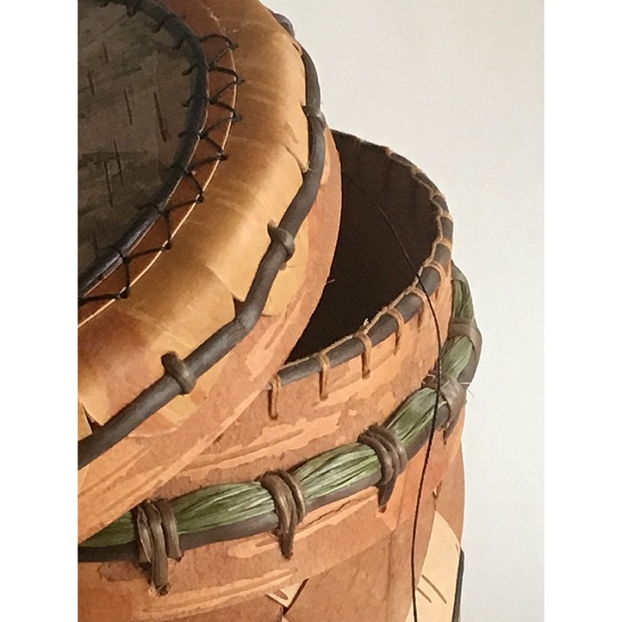 Learn to weave a basic, wide-bias weave, birch bark basket based on Native Alaskan Athabaskan style work. The piece may then be enhanced with teacher prepared and dyed spruce roots, or kept a bit more basic with user-friendly waxed threads (or a combination of both). The rim and foot are heavier split roots with a laced, double-layer, traditional birch base. For added interest, students may experiment with decorative stitching as well as eco-printed bark to adorn the lid or base, or perhaps to be applied elsewhere. Students will have the choice to keep it simple, and weave two non-lidded more basic pieces, or to focus on one challenging, lidded and lined piece. Most materials will be teacher-prepared, but liners and lids will be cut and prepared in class to fit.
