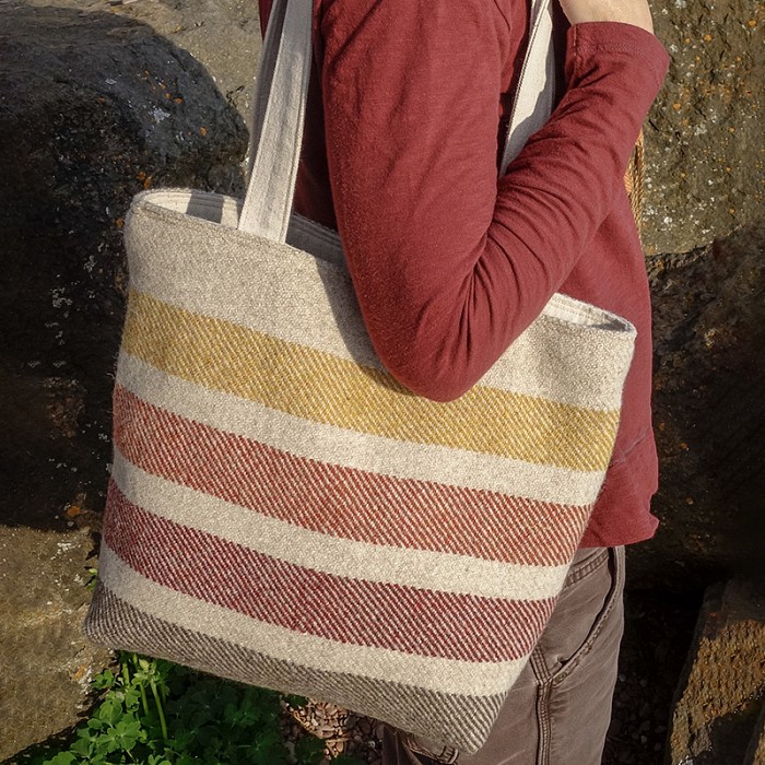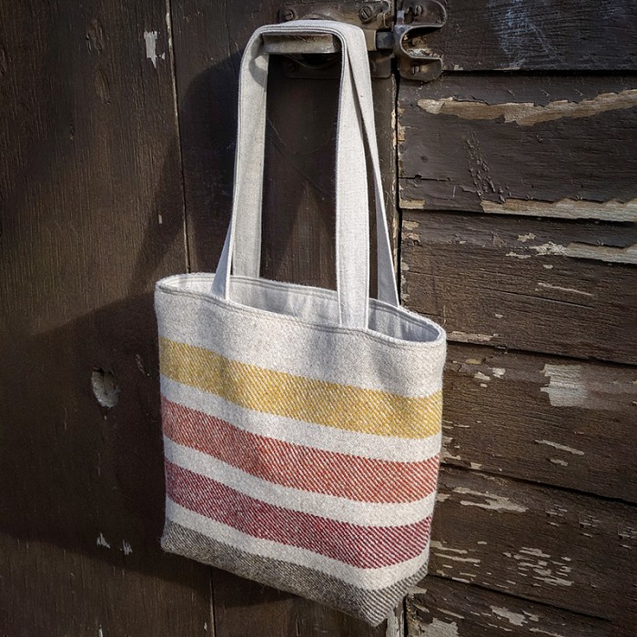 Design, weave, and sew your own custom wool tote bag, perfect for all of your North Woods adventures. Students will create a custom bag approximately 15”x15”x3”, woven with a basic twill structure. After designing and weaving their wool yardage, students will gain experience fulling their wool cloth to create a sturdy fabric for their tote bag construction. Students will also gain experience sewing with handwoven fabric. Bags will be lined with material purchased by the student, and handles will be sewn from the liner material, or optional leather handles can be purchased from the instructor for an additional fee of $20. There will be numerous options for customizing the bag, including the size, color, pattern choices, addition of pockets, straps/handles, etc.