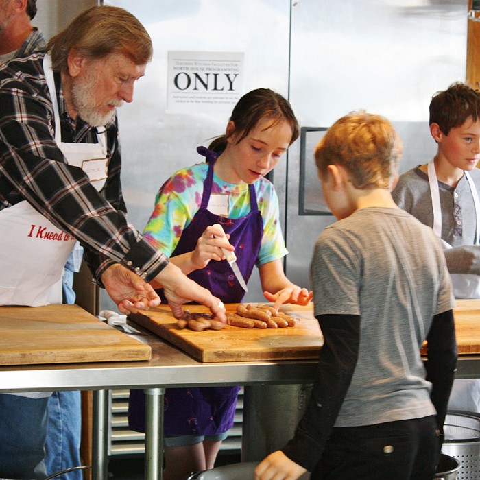Perfect for the ball park, the campfire or the hockey rink, who doesn't love a hot dog? Make your own, bun size or a foot long, using only stuff parents will approve of (like actual meat). There will be nothing in there that you don't have at home. Learn how to mix, stuff, cook and enjoy your own hot dog that YOU made. And unlike cake, you can have your hot dog and eat it too, because you will take some home with you and we will have our own weenie roast for lunch after the class. Impress your family and friends with some great hot dogs that you made. Not only will it be fun, but you will learn why it takes so much guts to make hot dogs!