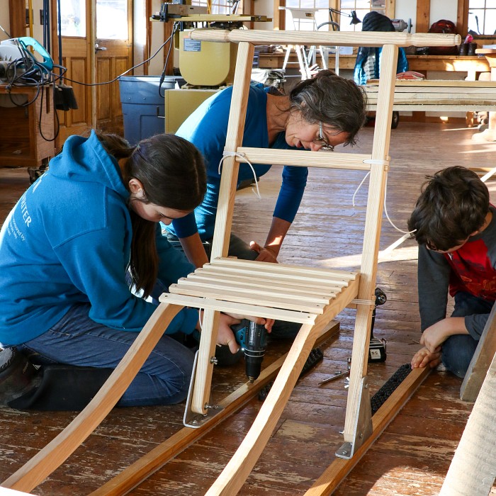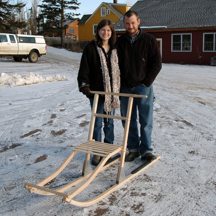 Follow the tracks of generations of northern folks and take advantage of snow-covered roads, sidewalks, and trails by crafting a kick sled of birch wood this winter. Learn both basic and advanced woodworking skills—from laminating wood for making runners to shaping a customized handlebar used for steering, you will walk (or glide) away from this course with some carpentry know-how as well as a sled. Both hand tools and power tools will be used during the project. Up to two people may participate for the base tuition, so it’s a great family project. Students ages 8+ are welcome to participate with a full paying adult. A completed sled measures 72”L x 16”W x 36”H, but collapses for easy transport. With gloved hands, grip the handlebars, push, and glide! Give your friend a ride or add an exciting element to your dog walking routine this winter on your new, handcrafted sled.