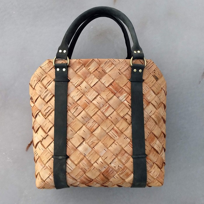 Carry around your studies, tools, or groceries in this beautiful and functional large birch bark tote basket. The course will begin by learning about ethical techniques for harvest. Students will then use hand tools to prepare their 1 inch wide bark strips and then weave them into a tote base, measuring roughly 11" x 4"x 13”. The bag will be woven using the double diagonal plaited weave pattern and the rim edge will be reinforced with black ash splint hidden inside. To complete the project, students will add two short strap handles that wrap around from the bottom of the bag allowing maximum tote capability. If time allows, students may add an interior pocket (for an additional $40 material fee). Because of the quantity and quality of the bark needed for this project, it will only be offered once this year in a small class setting. Note, this is not a backpack class. This class requires strong hand dexterity. Bark will be conditioned with a beeswax/walnut oil mixture so if allergies are a concern please inform the instructor at least one month prior to class.