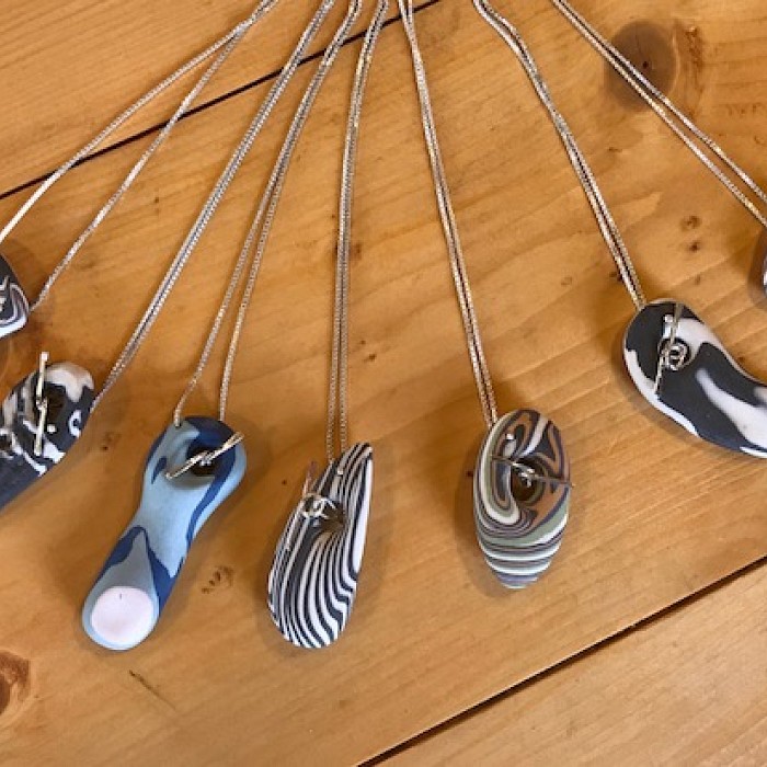 When clay meets stone and silver meets ceramic, “silveramics” is born. Merging David and Molly's media of clay and metal, respectively, this playful approach to jewelry making has been created by husband and wife team David Voorhees and Molly Sharp, long-time North House instructors. Students will work at their own pace with both materials to create unique jewelry pieces. Each day will be focused on a different technique in each medium. Using diamond encrusted drill bits, Molly will teach students to drill holes in ceramic, glass, and North Shore pebbles. She will also cover bezel setting, sawing, filing, forming, and soldering sterling silver. David will guide students working with fresh porcelain to make elements and embellishments in a variety of shapes, sizes, colors, and surfaces that will get fired quickly each night. Students will learn the clay techniques of forming, carving, sgraffito, nerikomi, burnishing, silver and gold lustre, and gold leaf treatments. Enjoy four days of play, design, and experimentation, resulting in beautiful and unique jewelry pieces. While no prior experience with clay is necessary, some soldering experience is helpful but not required. Students should have good eyesight or bring magnification.
