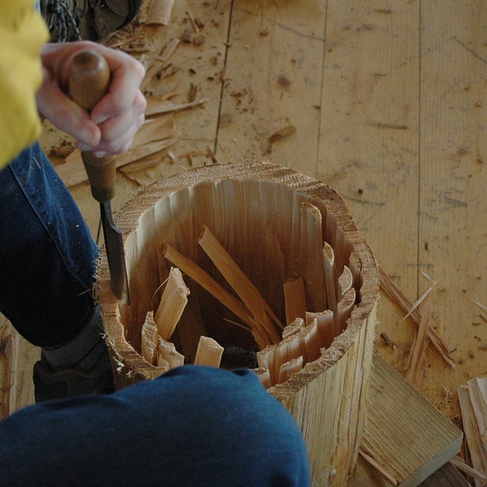 The timeless beat of the drum stems back to a time when we made our own music literally from the ground up. Before drum shops and before Putumayo, materials were hand-harvested from the forest to create wonderful sounds and were used to find rhythm in the world. In this course you will learn to carve a cedar hand drum from a hand-harvested log and then explore hand drumming patterns for lifelong skills with music. You will also work with softened rawhide as it is stretched to a desired tension and tone in the drum head. Although every drum will vary depending on the hand-harvested log, the finished drum will be approximately 9" in diameter and 8" in depth.
