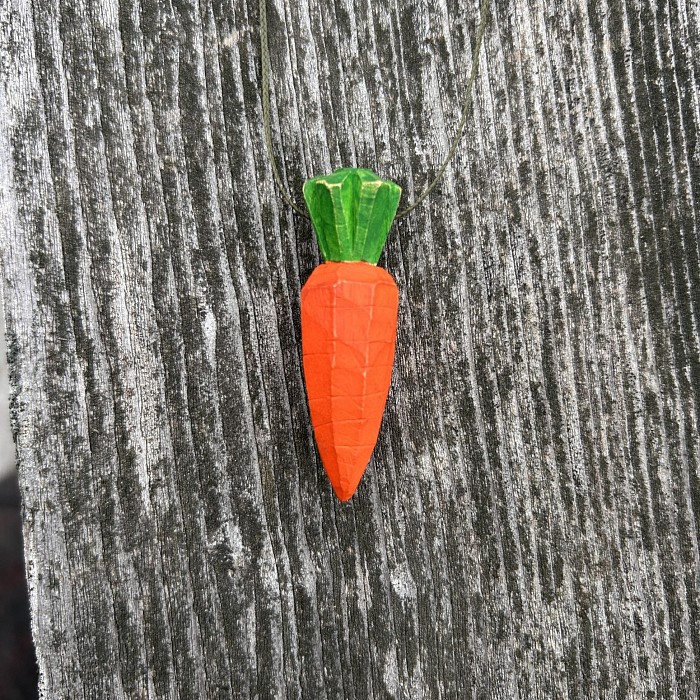Carving wood is an immensely satisfying and endlessly creative activity for kids and grown ups alike. Who doesn’t want to whittle a stick now and then? With a few important techniques and skills, it can be a safe(r) pursuit too. In this family workshop, we will learn to carve a carrot necklace out of wood, an ideal first carving project. We will all work together learning to safely use many fun tools including a vegetable peeler, shaving horse, draw knife, spokeshave, and of course carving knives! We will learn to notice wood grain direction and why it matters. We will learn five basic knife carving moves. We will have carrot themed snacks and play a carrot themed game when we need a break. This class is definitely going to be fun! No carving experience is needed for this class, open to kids ages 7+ accompanied by a grown-up. Tuition and materials fee covers one adult/child pair.