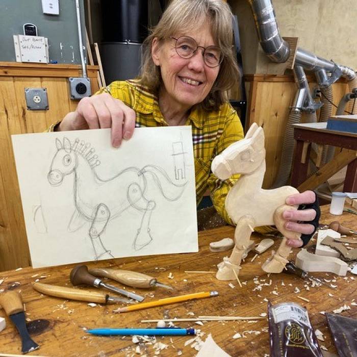 Whether it’s a bobble-head, a puppet, a doll, or a dancing figure atop an automaton, carved figures that can dance, spin, wobble, or more bring delight to the maker and everyone who encounters them. Experienced carver Cecilia Schiller will share her unique approach to figure carving, honed from her decades of experience making mechanical figures that bring her automata to life. Beginning with basswood blanks, students will carve separate parts and then assemble them into a moving figure, learning to make joints, add “stops” for more realistic movement, and enhance facial details to create engaging and whimsical figures. No experience necessary. Students aged 15+ may register for this course independently. Individual students aged 12-14 may register with a full-paying adult. The youth student will receive a 25% intergenerational discount; call to register.